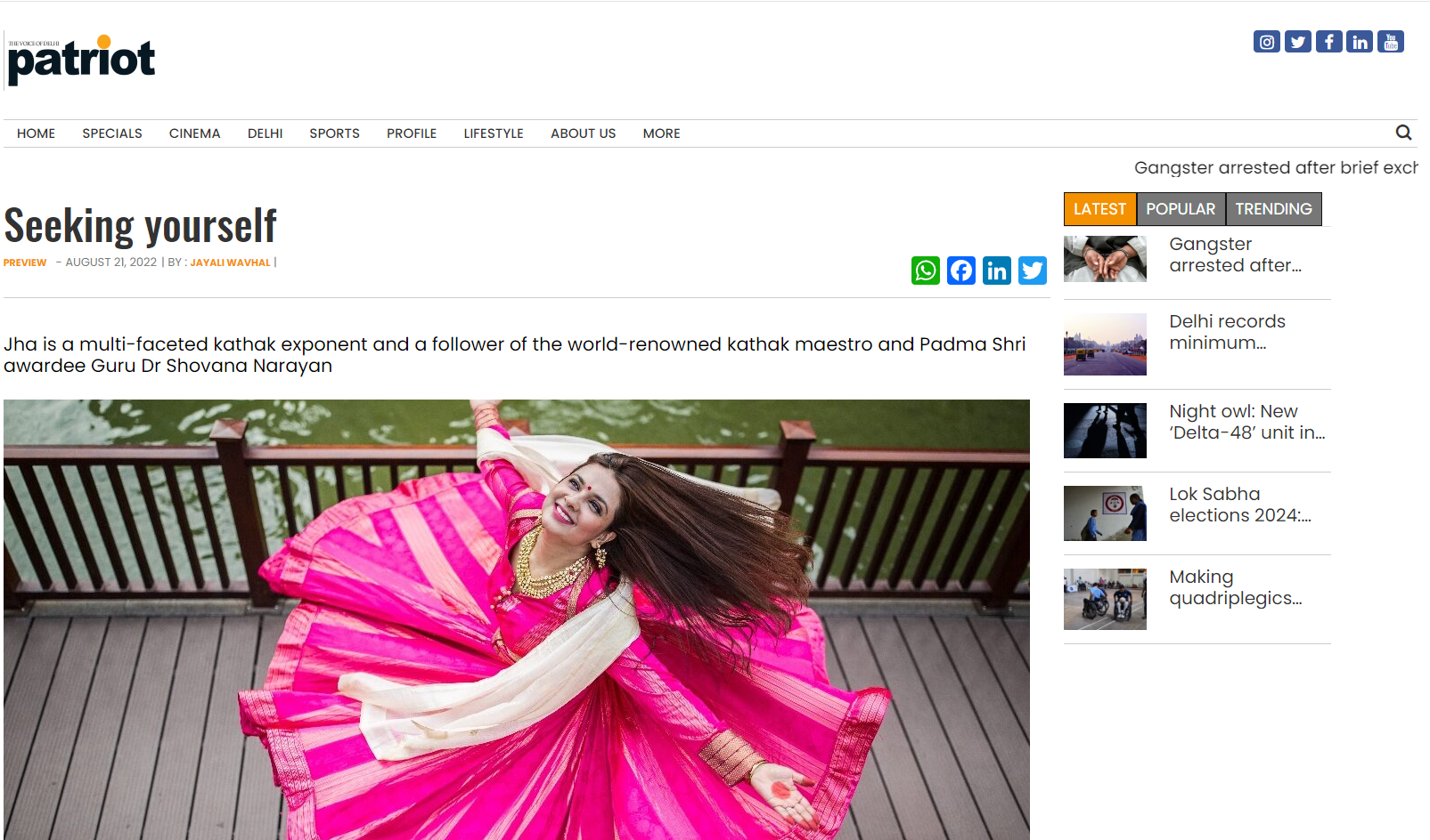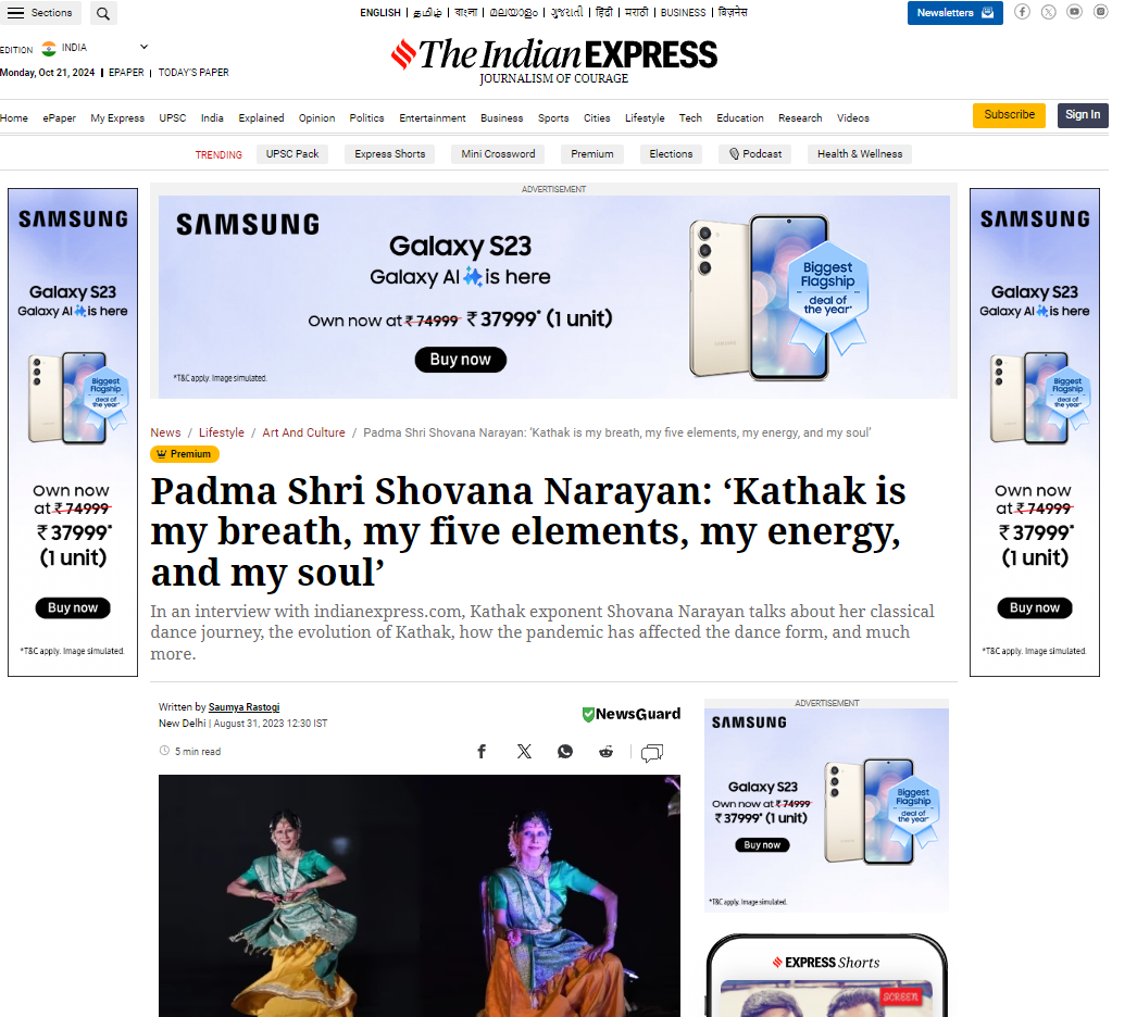 A Multi-Faceted Kathak Exponent, Is a Disciple of reowned Guru & Padmashri Awardee Guru